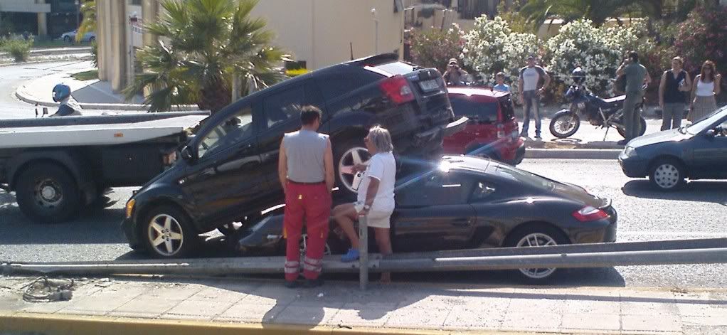 Το Caliber κατέβαινε μαλλια και ητανε περναω δεν περναω τελικα πάτησε φρένα.Αυτος με το Cayman ανοιξε γκάζι νομιζοντας πως ο αλλος θα κάνει το ίδιο αλλα ο άλλος φρέναρε αποτομα το τζίπ γονάτισε και ήρθε το Cayman kai καρφώθηκε.....Το Porsche ψιλοζημίες μόνο!